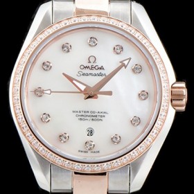 SA급 오메가 여성용 씨마스터 "우아함의 정수" 220.25.38.20.55.001 아쿠아 테라 코-액시얼 크로노미터 화이트 자개 다이얼 18K 로즈골드 투톤콤비 오토매틱 무브먼트 OMG0103 xx > 오메가 레플리카