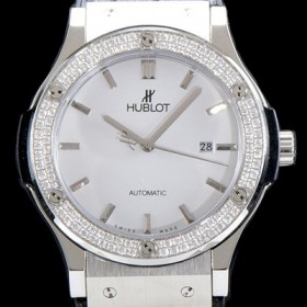 SA급 휴블렛 남성용 클레식 퓨전 582.NX.2610.RX.1204 "실버-다이아몬드 베젤" 화이트 다이얼 오토매틱 무브먼트 HUB0100 xx > 위블로 레플리카
