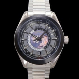 Omega Men's Seamaster Aqua Terra 150M GMT Worldtimer 43mm Automatic Cal. 8938 Type Metal Strap Gray Dial
