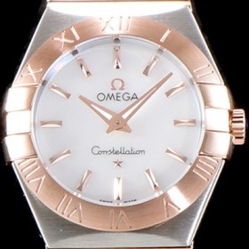 SA급 오메가 남성용 여성 컬렉션 컨스틀레이션 123.20.24.60.05.001 오메가 코-액시얼 27MM 로마 숫자가 인그레이빙된 베젤 18K 로즈골드 콤비 화이트 자개 다이얼 쿼츠 무브먼트 OMG4123 xx > 오메가 레플리카