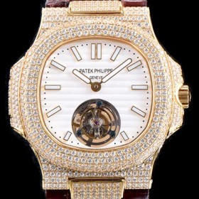 SA급 파텍필립 남성용 노틸러스 뚜르비옹 18K 옐로우 골드 최상급쥬얼 다이아몬드 풀 세팅 케이스 화이트 텍스쳐 다이얼 아시안 투어빌론 탑재 PAT0100 xx > 파텍필립 레플리카