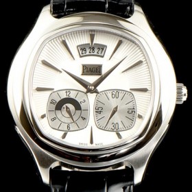 Piaget Emperador Cushion Watch Seconds , date and dual time zone White Guilloche Dial Cal.850P Automatic Movement