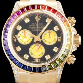 SA급 로렉스 남성용 2018년 바젤월드 코스모그래프 데이토나 116598 RBOW "레인보우" 무지개 컬러 바게크 컷 사파이어 36개 세팅 베젤 블랙 다이얼 오이스터 브레이슬릿 7750B-2 오토매틱 무브먼트 ROL0501 xx > 로렉스 레플리카