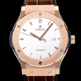 SA급 휴블렛 남성용 클래식 퓨전 45미리 금장 오토매틱 9015 타입 가죽/러버 믹스 화이트다이얼 HUB73536 xx > 위블로 레플리카