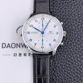SA급 아이더블유씨 남성용 150주년 신상품 / 포르투기즈 IW371602 크로노그래프 오토매틱 Cal.69355 타입 41미리 가죽줄 화이트다이얼 IWC74316 xx