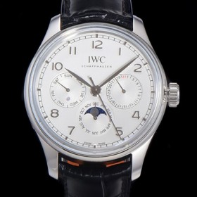 • SA급 아이더블유씨 남성용 포르투기즈 퍼페추얼 캘린더 문페이즈 오토매틱 42mm Cal.82650 타입 가죽줄 화이트다이얼 iwc42081 xx