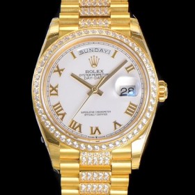 Rolex Day-Date Automatic Cal.3235 TYPE 36mm Mens 18K All Yellow Gold Diamond White Dial