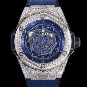 SA급 휴블렛 남성용 빅뱅 쌍 블루 티타늄 오토매틱 HUB1213타입 45미리 다이아몬드/보석 케이스 가죽/우레탄 믹스밴드 블루다이얼 hub98356 xx > 위블로 레플리카