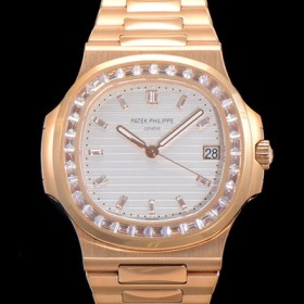 Patek Philippe Men's Nautilus Gemstone/Cubic Setting 18k Rose Gold Cal.324 S Type C Move Automatic 40mm White Dial