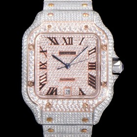 SA급 까르띠에 남성용 산토스 쥬얼 다이아몬드 셋팅 베젤 40mm 큐빅/보석 다이얼 오토매틱 무브먼트 CAR45686 xx