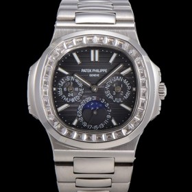 • SA급 파텍필립 남성용 Ref.5740 노틸러스 문페이즈 오토매틱 Cal.240 Q타입 40mm 다이아몬드/쥬얼 메탈줄 그레이다이얼 pat5912 xx