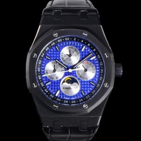 SA급 오데마피게 남성용 로얄오크 퍼펙츄얼 캘린더 41mm 오토매틱 T5134 타입 PVD블랙 무광 코팅 가죽줄 블루다이얼 aud5192 xx > 오데마피게 레플리카