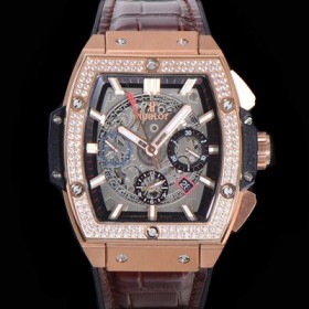 SA급 휴블렛 남성용 스피릿 빅뱅 마스터피스 크로노그래프 Hub4700타입 45mm 18K로즈골드/다이아몬드 셋팅 가죽줄 스켈래톤다이얼 hub9351 xx > 위블로 레플리카