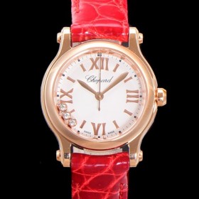 SA급 쇼파드 여성용 해피스포츠 다이아몬드 쿼츠 오리지널 ETA956.102 타입 스몰30mm 레이디스 금장시계 가죽줄 화이트다이얼 cho8420 xx > 쇼파드 레플리카