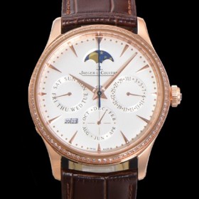 SA급 예거르꿀뜨르 남성용 마스터 울트라 퍼페추얼 캘린더 18K 로즈골드 오토매틱 MC868 타입 39mm 가죽줄 다이아몬드베젤 문페이즈 화이트 다이얼 jag80287 xx > 예거르꿀뜨르 레플리카