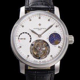 SA급 바쉐런콘스탄틴 남성용 트레디셔널 투어빌론 오토매틱 문페이즈 44mm 가죽줄 화이트다이얼 vac07216 xx > 바쉐론 콘스탄틴 레플리카