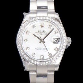 Rolex Date-Just Oyster Perpetual 31mm Ladies Automatic Diamond Bezel White Dial