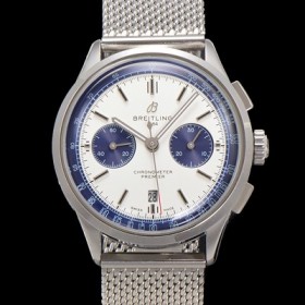 • SA급 브라이틀링 남성용 프리미에르 크로노그래프 7750 타입 오토매틱 42mm 메쉬밴드 화이트 다이얼 bre6013 xx