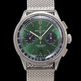 SA급 브라이틀링 남성용 프리미에르 AB0118A11L1X1 크로노그래프 7750 타입 오토매틱 42mm 메쉬밴드 그린 다이얼 bre6014 xx > 브라이틀링 레플리카