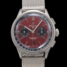 • SA급 브라이틀링 남성용 프리미에르 크로노그래프 7750 타입 오토매틱 42mm 메쉬밴드 레드 다이얼 bre6024 xx