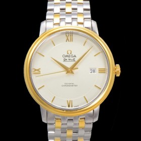 • SA급 오메가 남성용 드빌 프레스티지 424.20.37.20.02.001 오토매틱 Cal.8800타입 39.5mm 18K 옐로우골드 메탈줄 화이트 다이얼 omg20201 xx