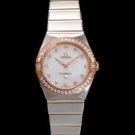 Omega Women's Constellation Rose gold diamond set bezel 28mm quartz movement White dial
