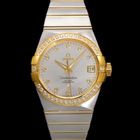 Omega Men's Constellation 18k yellow gold diamond set bezel 38mm automatic 8500 type silver dial