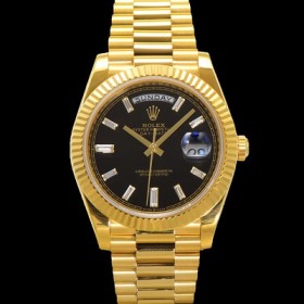 Rolex Men's New TOP Grade Qualit Day-Date Weight 195g 18K yellow gold 40mm Automatic Cal.3255 Type Black Baguette Dial
