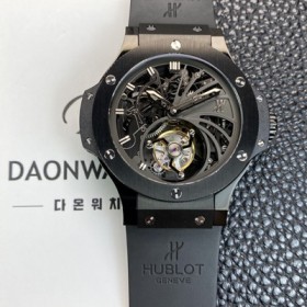 • SA급 휴블렛 남성용 빅뱅 블랙 PVD 코팅 투어빌론 탑재 무브먼트 스켈레톤 다이얼 hub2154 xx