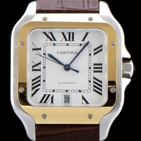 SA급 까르띠에 남성용 산토스 드 까르띠 W2SA0006 "18K 옐로우골드 베젤" 라지 모델-데이트 정품 동일 사이즈 실버 마감 오팔린 다이얼 오토매틱 무브먼트 CAR4001 xx > 까르띠에 레플리카