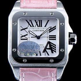 SA급 까르띠에 남여공용 산토스100 W20126X8 커플용 워치 화이트 다이얼 핑크 레더 스트랩 오토매틱 무브먼트 CAR0333 xx > 까르띠에 레플리카