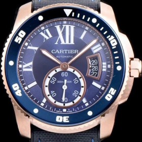 Cartier Calibre de Cartier Rose Gold&Black Ceramic Bezel Blue Dial Automatic Movement
