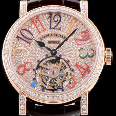 SA급 프랭크 뮬러 남성용 Men's 컴플리케이션 7008 T D 뚜르비용 18K 로즈골드 브릴리언트 컷 다이아몬드 풀 셋팅 골드 다이얼 아시안 투어빌론 탑재 FRA0203 xx