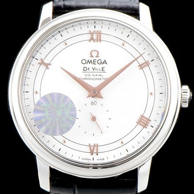 SA급 오메가 남성용 드빌 프레스티지 424.13.39.20.02.001 "스몰 세컨즈 카보숑"코-액시얼 39.5MM 크로노미터 화이트 다이얼 오토매틱 무브먼트 OMG0501 xx 요약정보 및 구매