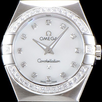 • SA급 오메가 남성용 여성 컬렉션 컨스틀레이션 123.15.27.60.55.003 오메가 코-액시얼 27MM 다이아몬드 세팅 베젤 화이트 화이트 다이얼 쿼츠 무브먼트 OMG4124 xx