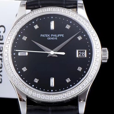 Patek Philippe Calatrava SS Best Edition 18k White gold Diamond Bezel Black Dial Automatic Movement