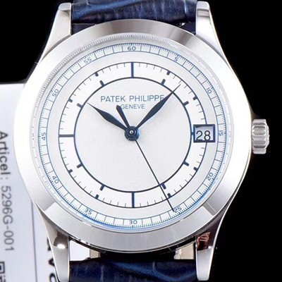 SA급 파텍필립 남성용 칼라트라바 5296G-001 화이트 다이얼 오토매틱 무브먼트 PAT0103 xx > 파텍필립 레플리카
