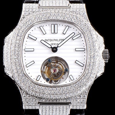 SA급 파텍필립 남성용 노틸러스 뚜르비옹 최상급쥬얼 다이아몬드 풀 세팅 케이스 화이트 텍스쳐 다이얼 아시안 투어빌론 탑재 PAT0104 xx