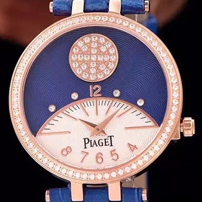 SA급 피아제 여성용 워치 18k 로즈골드 블루&화이트 텍스쳐다이얼 최상급 쥬얼 다이아몬드 베젤 스위스 쿼츠 무브먼트 PIA4214 xx