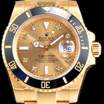 Rolex NEW Submariner Black Ceramic Bezel 18k Yellow Gold Yellow Gold Dial Bracelet Automatic Movement