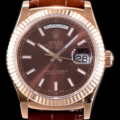 SA급 로렉스 남성용 추가업데이트 데이데이트 18K 로즈골드 케이스 36MM 브라운 썬더스트 다이얼 UP!! 크로노미터 플루티드 베젤 오토매틱 무브먼트 ROL0530 xx > 로렉스 레플리카
