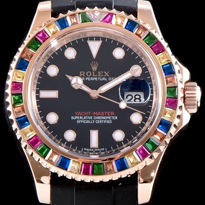 • SA급 로렉스 남성용 NEW ARRIVAL!! 요트마스터 116695SATS 레인보우 바게크 컷 세팅 베젤 블랙 다이얼 오이스터 플렉스 스위스 3135오토매틱 무브먼트 ROL0034 xx