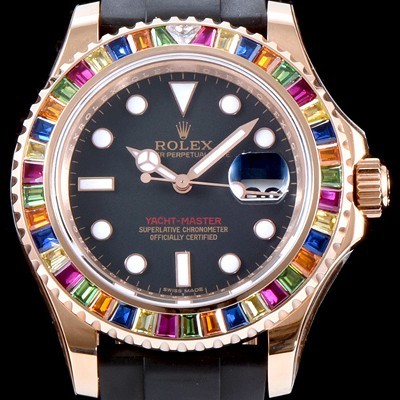 SA급 로렉스 남성용 NEW ARRIVAL!! 요트마스터 116695SATS 레인보우 바게크 컷 세팅 베젤 블랙 다이얼 오이스터 플렉스 스위스 3135오토매틱 무브먼트 ROL0034 xx > 로렉스 레플리카