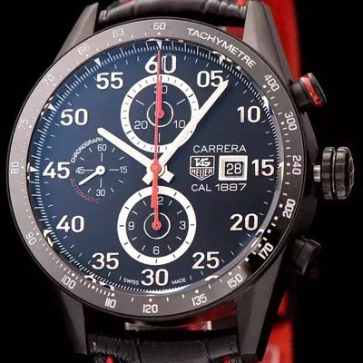 • SA급 태그호이어 남성용 까레라 칼리버 1887 크로노그래프 블랙 다이얼 7750 오토매틱 TAG0403 xx