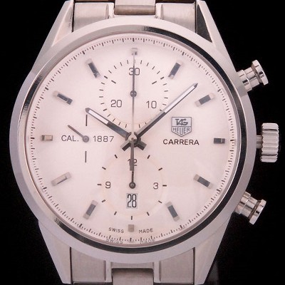 Tag Heuer Carrera CAL1887 Chronograph SS White Dial on SS Bracelet A7750