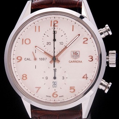 SA급 태그호이어 남성용 까레라 칼리버 1887 크로노그래프 화이트 다이얼 7750 오토매틱 TAG4212 xx