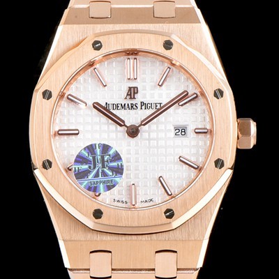 SA급 오데마피게 남성용 로얄오크 67650OR.OO.1261OR.01 18K 로즈골드 화이트 와플 다이얼 브레이슬릿 쿼츠 무브먼트 AUD0250 xx > 오데마피게 레플리카
