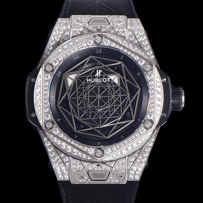 Hublot Mens Big Bang Sang Bleu Titanium Black 45mm Diamond Case Automatic HUB1213 TYPE Balck Dial