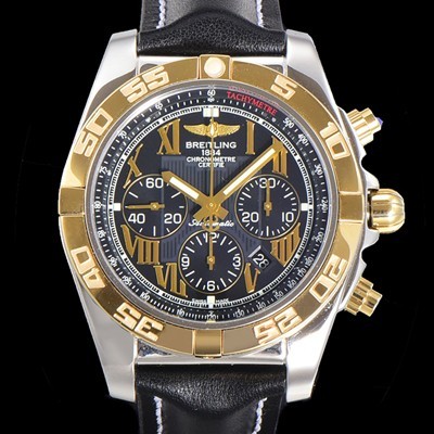 SA급 브라이틀링 남성용 원드라이더 크로노맷 오토매틱 ETA-7750 기계식 44mm 18K 옐루골드 가죽줄 블랙다이얼 bre1951 xx > 브라이틀링 레플리카