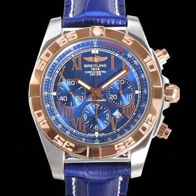 SA급 브라이틀링 남성용 원드라이더 크로노맷 오토매틱 ETA-7750 기계식 44mm 18K 로즈골드 가죽줄 블루다이얼 bre1915 xx > 브라이틀링 레플리카